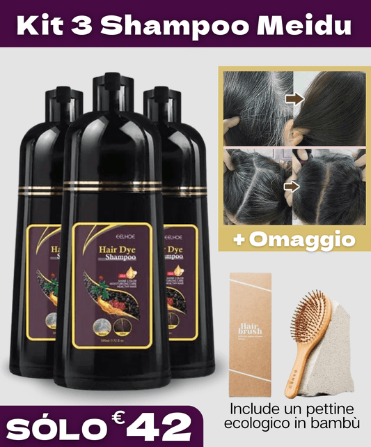 Shampoo 3 in 1 per Capelli Grigi + Pettine Ecologico in Bambù in Omaggio